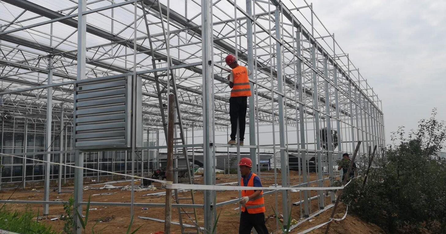 白水縣杜康鎮(zhèn)和園花卉玻璃棚施工現(xiàn)場!